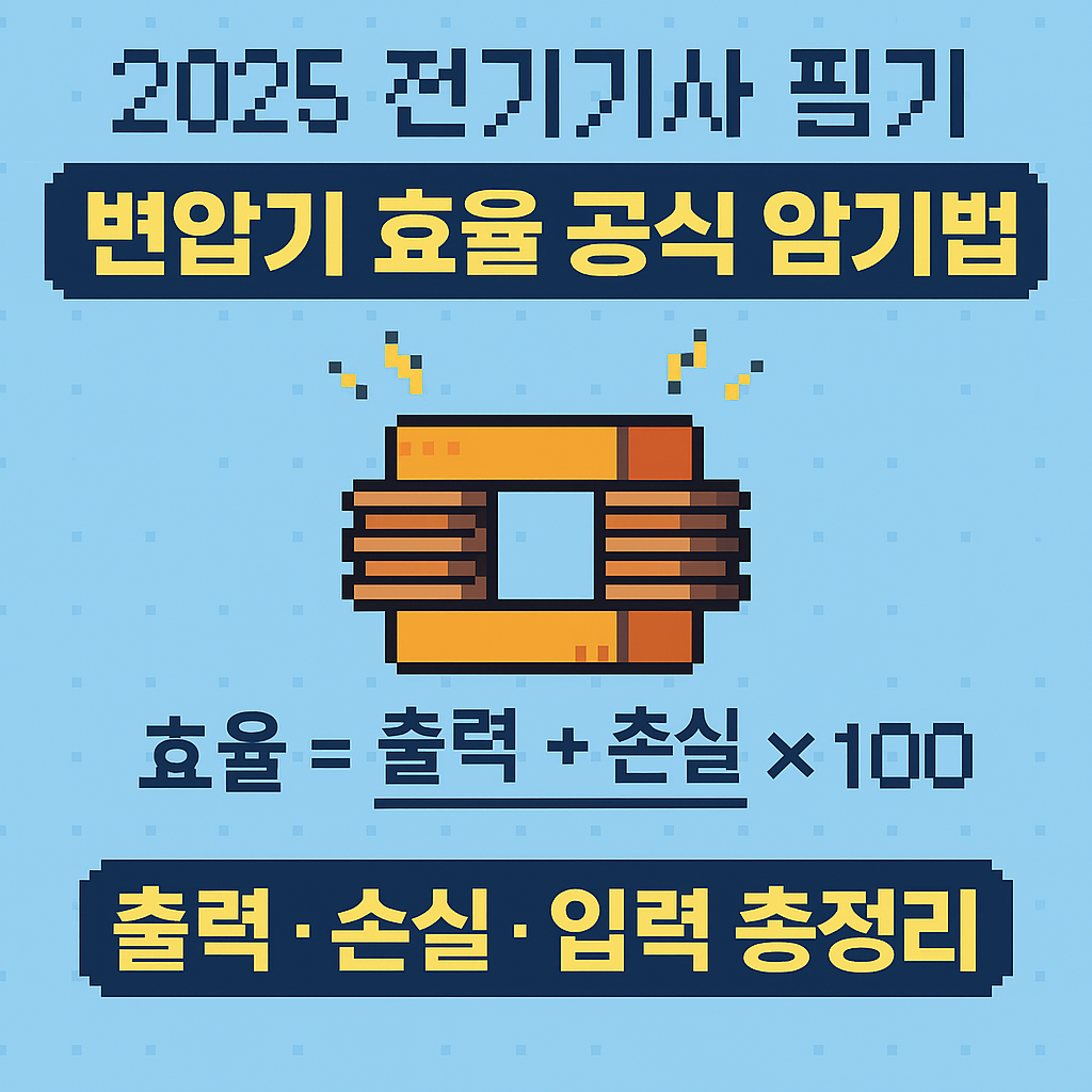 [2025 전기기사 필기] 변압기 효율 공식 암기법: 출력·손실·입력 총정리